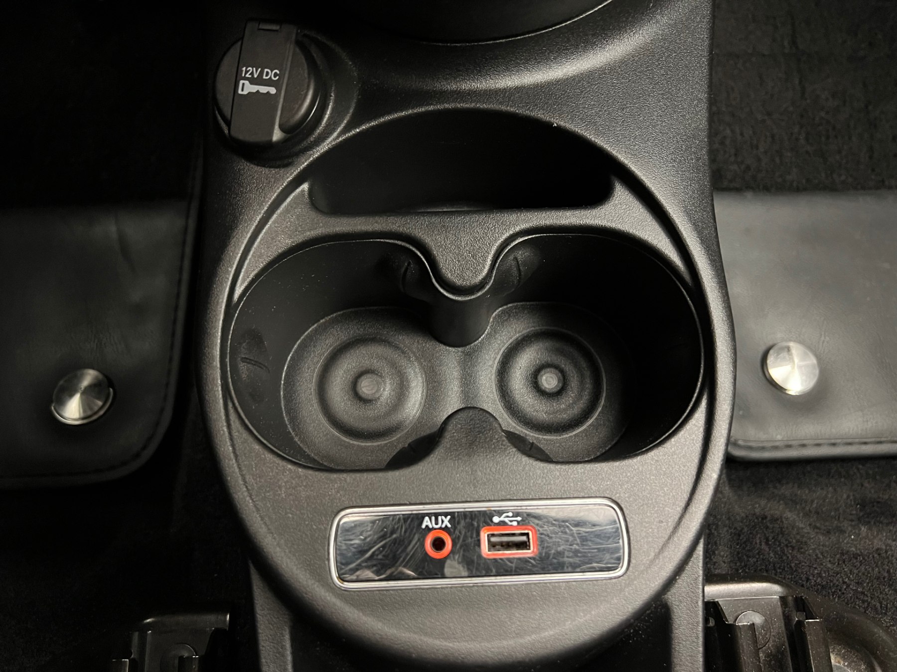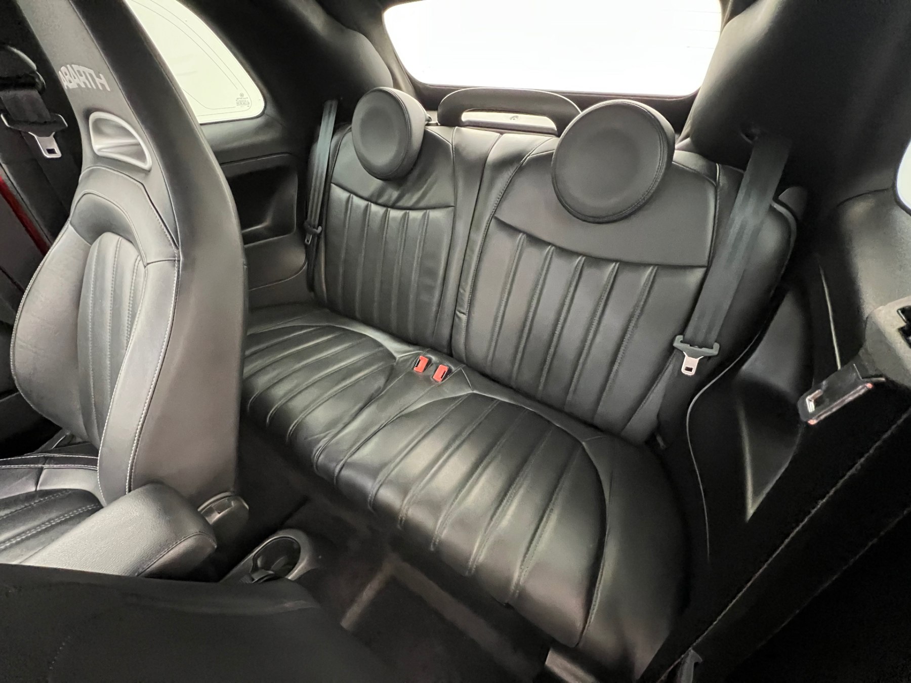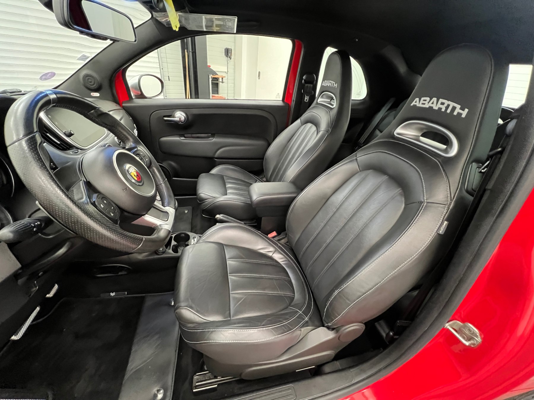 • Sieges Sport et sellerie cuir noir "Abarth" avec accoudoirs des panneaux de porte en simili-cuir