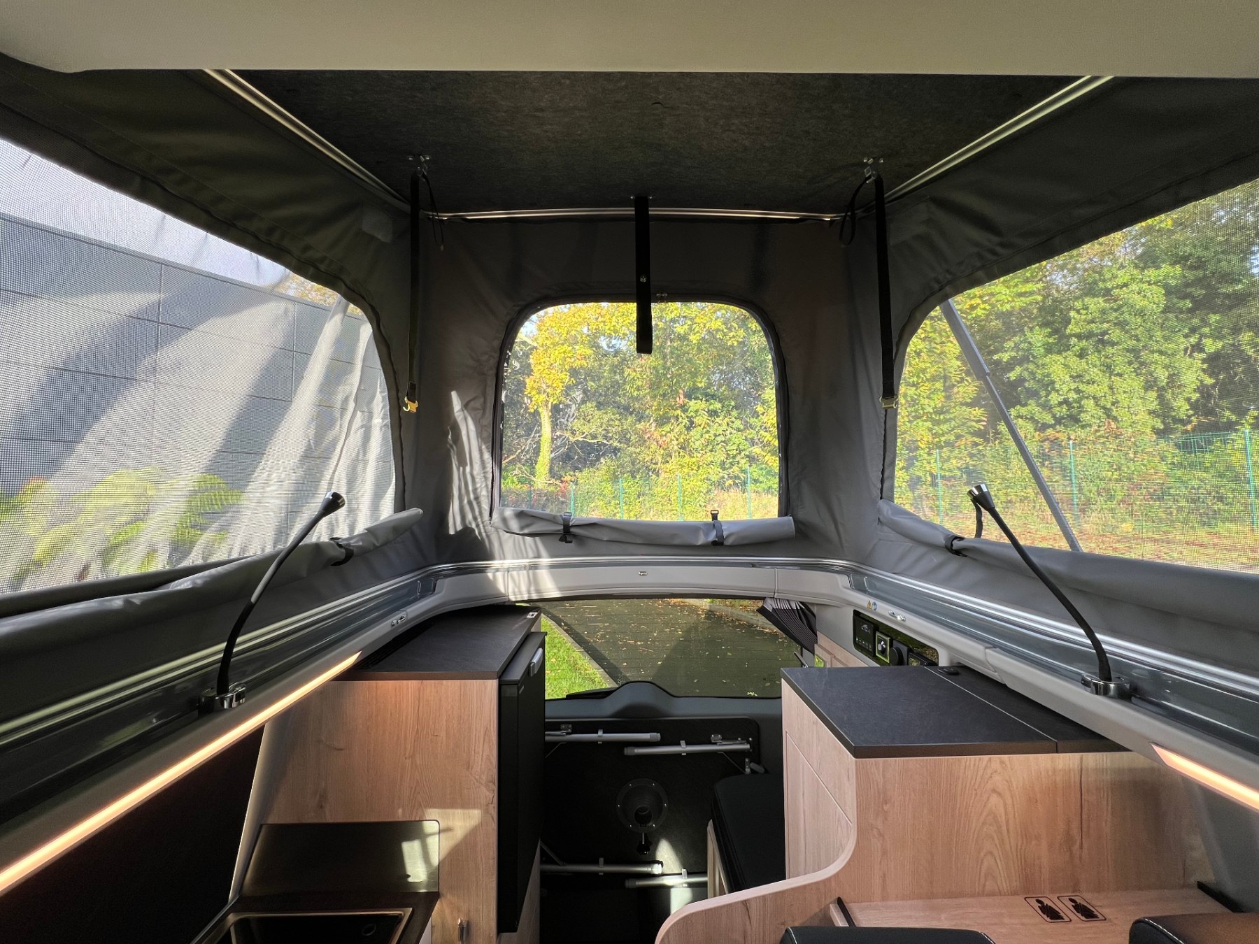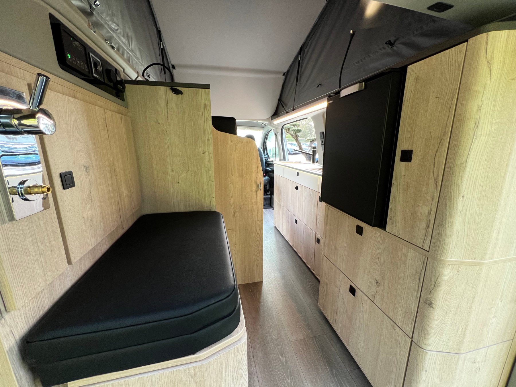 • Pack custom Belize ( Pré-disposition panneau solaire, Banquette BZ électrique, Chauffe-eau (eau chaude avec boiler 10L) Truma, Batterie cellule AGM 92Ah,Préparation faisceau électrique attelage, Table camping avec 4 pieds ajustable, Tapis de sol cabin
